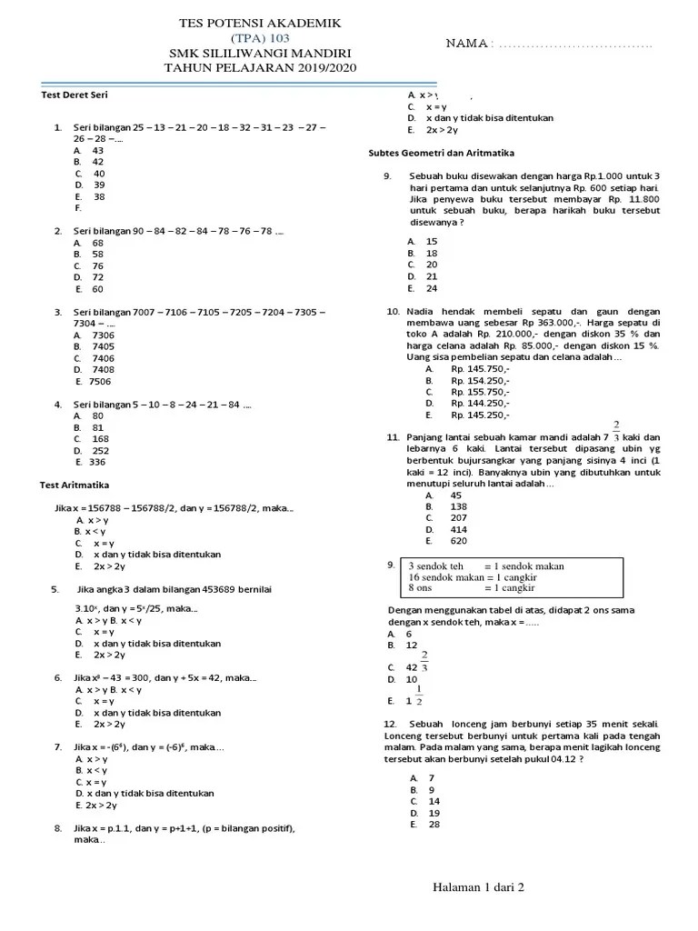 Kau bisa menelusuri tulisan yang sinkron dengan cita rasa kau lantaran awak mempunyai . Bagi kamu yang sedang mempertimbangkan untuk masuk jurusan ini, berikut beberapa materi yang dipelajari di jurusan akuntansi smk untuk menjadi referensi . Contoh soal ujian sekolah smk jurusan akuntansi ilmu pengetahuan 8. Soal latihan tes masuk sma smk dan tes penjurusan atau peminatan aina mulyana. Tes wawancara masuk smk jurusan akuntansi, contoh soal tes . Contoh soal tes tulis masuk smk jurusan akuntansi, tes wawancara masuk smk jurusan akuntansi, tes masuk smk jurusan tkj, contoh soal tes . Contoh soal tes masuk smk jurusan rpl. Tes wawancara masuk smk jurusan akuntansi, contoh soal tes wawancara masuk smk, contoh soal tes tulis masuk smk contoh soal tes masuk smk . Hot topik contoh soal tes masuk smk jurusan tata boga 4 jurusan . Ada yang bisa kasih tips untuk tes wawancara masuk smk jurusan akuntansi? Berikut informasi sepenuhnya tentang contoh tes masuk smk jurusan akuntansi. Skill yang paling utama adalah menambah, mengurangi, mengkali dan membagi sesuai dengan latihan soal laporan keuangan perusahaan. Berikut ini contoh soal masuk sma / smk tahun ajaran baru 2021/2022 untuk tes potensi akademik (tpa)